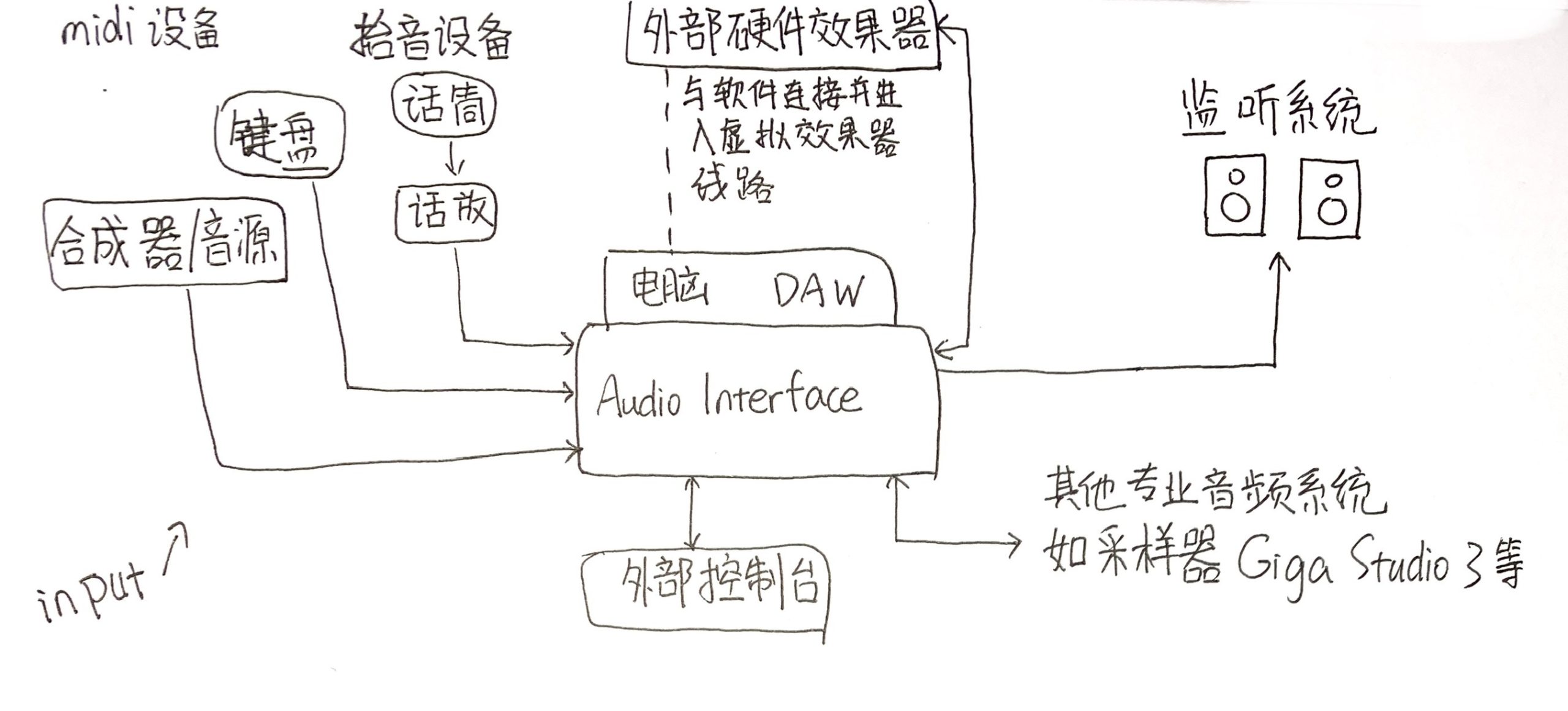 4,画出基本的基于电脑软件音序器的MIDI系统构成图
