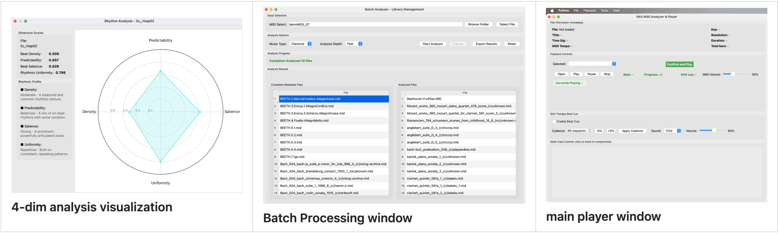 4D rhythmic quantification: Extracts interpretable rhythmic metrics—beat density, predictability, beat salience, and rhythmic uniformity—that map directly to clinically meaningful indicators rather than pure statistical features.